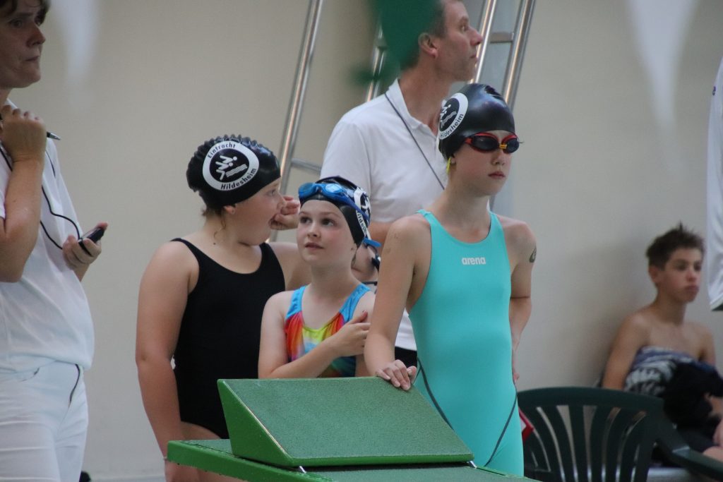 Ebenfalls für Bronze auf Bezirksebene reichte das Gesamtergebnis aus, welches Niklas Kastner (2014), Elias Machens (2014), Marcel Majewski (2014) und Michael Schönknecht (2014) unter der Leitung von Lars Girbig zustande brachten. Sie bildeten die erste Mannschaft der männlichen Jugend D, die ab Samstagnachmittag gegen die anderen Teams im Bezirk Hannover antraten. Bei ihren weiblichen Kolleginnen der D-Jugend rutschte die erste Mannschaft mit Anni Machtens (2014), Lucia Vu (2014), Emma Schmidt (2015), Lina Kleemann (2015), Ulla Koytek (2015) und Ida Inglis-Arkell (2015) unter der Begleitung von Tobias Falk mit gerade einmal 23 Sekunden Rückstand in der Gesamtwertung am Podium vorbei auf den vierten Platz. Besonders in der 4×100 Lagen-Staffel kitzelten sie der Mannschaft vom SGS Hannover mit nur 0,02 Sekunden Rückstand gehörig an den Füßen. Unter der Begleitung von Jan Ole Englmann gaben auch Pauline Bonnkirch (2015), Sarah Wacker (2015), Theodora Schrader (2015), Stella Emilia Meier (2014), Lara Hädermann (2014) und Victoria Schüler (2014) Vollgas: Sie erkämpften sich als zweite Mannschaft der weiblichen D-Jugend den sechsten Platz auf Bezirksebene.