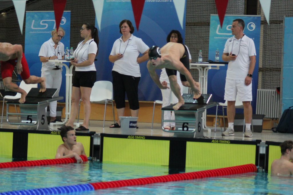 Erfolgreichster Teilnehmer aus Hildesheim war einmal mehr Lukas Stöcklein. Gerademal eine Woche zurück vom Höhentrainingslager als Gast der hessischen Auswahlmannschaft im türkischen Erzurum beendete er die Meisterschaft mit einem Kreisrekord über 50 Meter Schmetterling in 24,22 Sekunden und einem Sieg der offenen Landesmeisterschaft. Den Kreisrekord hat er bereits im Vorlauf schon einmal unterboten. Über 100 Meter Freistil blieben die Uhren für ihn bei 50,64 Sekunden stehen, was auch eine fantastische Bestzeit bedeutete. Des Weiteren konnte er noch zwei Silbermedaillen und eine Bronzemedaille in der offenen Wertung sowie vier Silbermedaillen in der Juniorenwertung erringen. Damit hat er sich für drei Strecken für die Deutschen Kurzbahnmeisterschaften qualifiziert. Außerdem führte er sein Team über 4x50m Freistil zu einem dritten Platz in Niedersachsen. Diese Leistung von Lukas Stöcklein, Julian Alexander Ackemann, Tim Oberbeck und Jan Ole Englmann bedeutete zusätzlich einen neuer Kreisrekord und die Qualifikation für die Deutschen Meisterschaften.