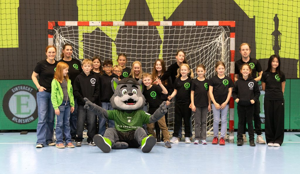 Uuuund Toooor…. sowas hören wir hier im Schwimmen ja eher selten. Und doch war es am Sonntag, den 2.11.2025, soweit. An diesem Tag stand nämlich das Handballspiel zwischen HC Eintracht Hildesheim und der HSG Eider Harde in der dritten Bundesliga in der Sparkassenarena auf dem Programm. Fünfzehn Kinder aus dem Delfin- und Orca-Team nahmen das Angebot von Kais Bodensieck an, Freikarten für dieses Spiel zu bekommen. Und was für eine Stimmung: Trommeln… Musik…Lichtershow. Alles war perfekt aufeinander abgestimmt und die Stimmung in der Halle war großartig. Unter dem lauten Jubel unserer Kinder gewannen die Gastgeber das Match mit 27:18 und machten dadurch in ihrem Kampf um den Aufstieg in die zweite Bundesliga einen gewaltigen Schritt nach vorne. Nach dem Spiel durften unsere Kinder noch alle ein Foto Teammaskotchen Lupo aufnehmen. Insgesamt verbuchen wir diese Veranstaltung als einen vollen Erfolg und bedanken uns ganz herzlich bei Kais Bodensieck für die Organisation der Freikarten!!
