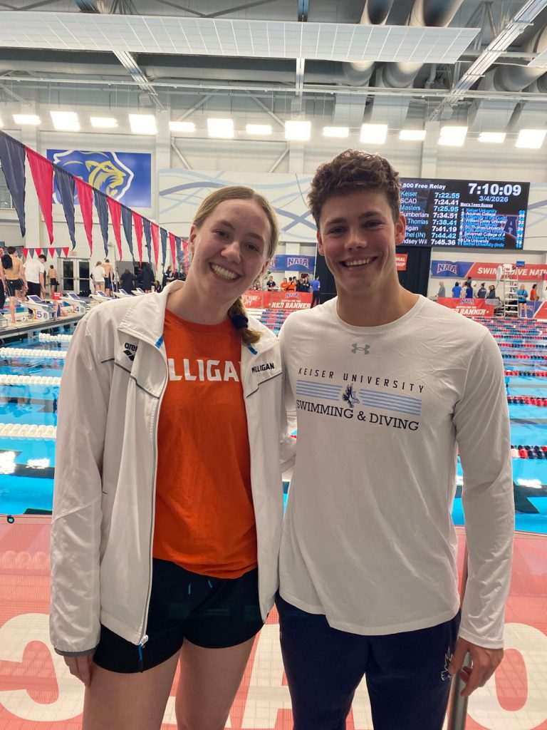 Emily Haas (links) und Noel de Geus (rechts) bereit für ihre Starts 🏊♂️✨ Macht euch bereit für das ultimative Schwimmevent der Saison! Vom 4.-7. März 2026 gehen die Nation Championships in Elkard, USA, an den Start. 🎉🇺🇸