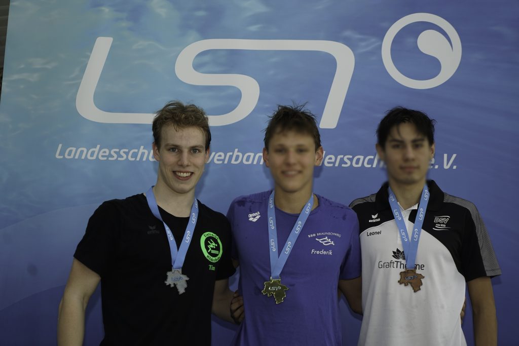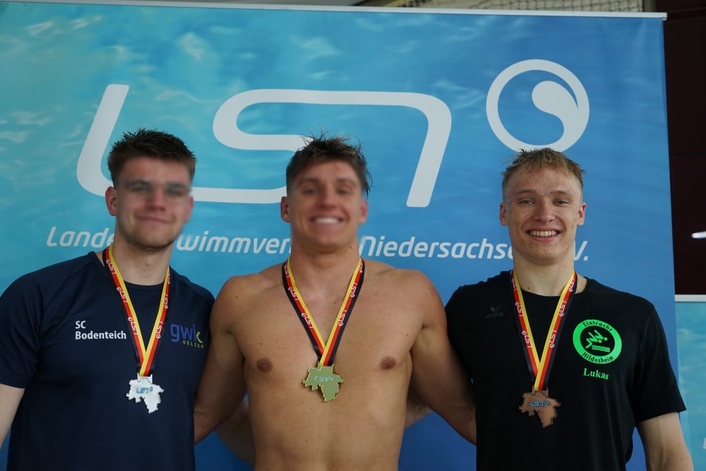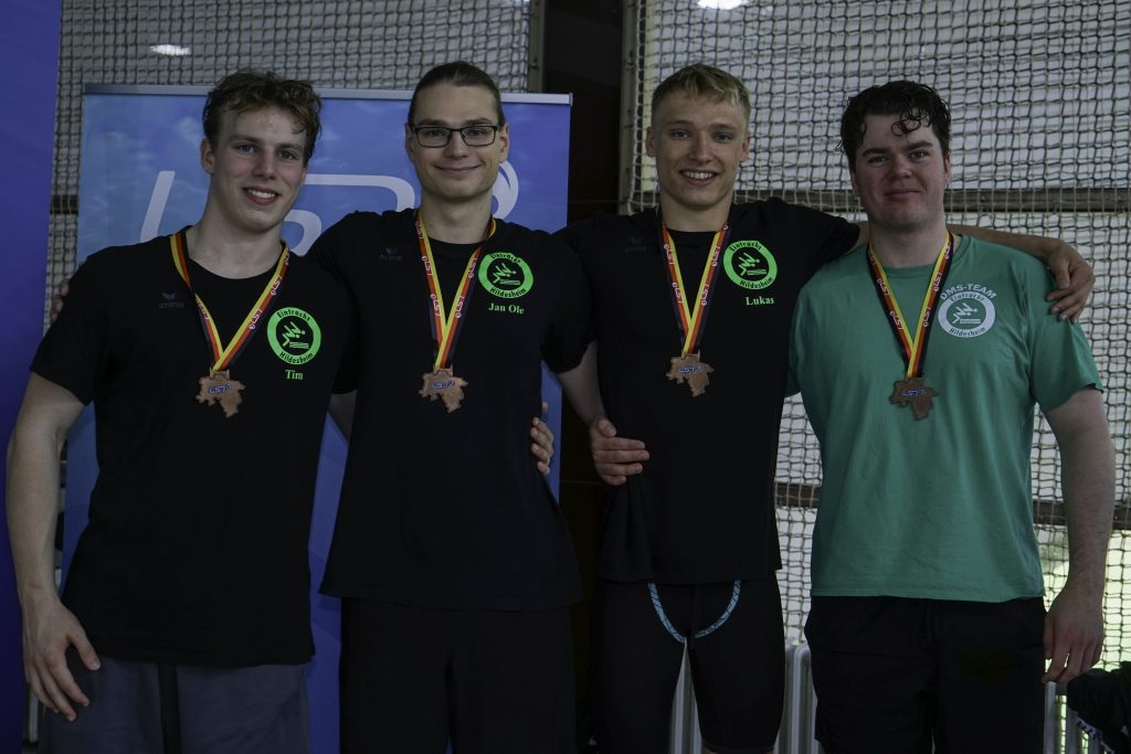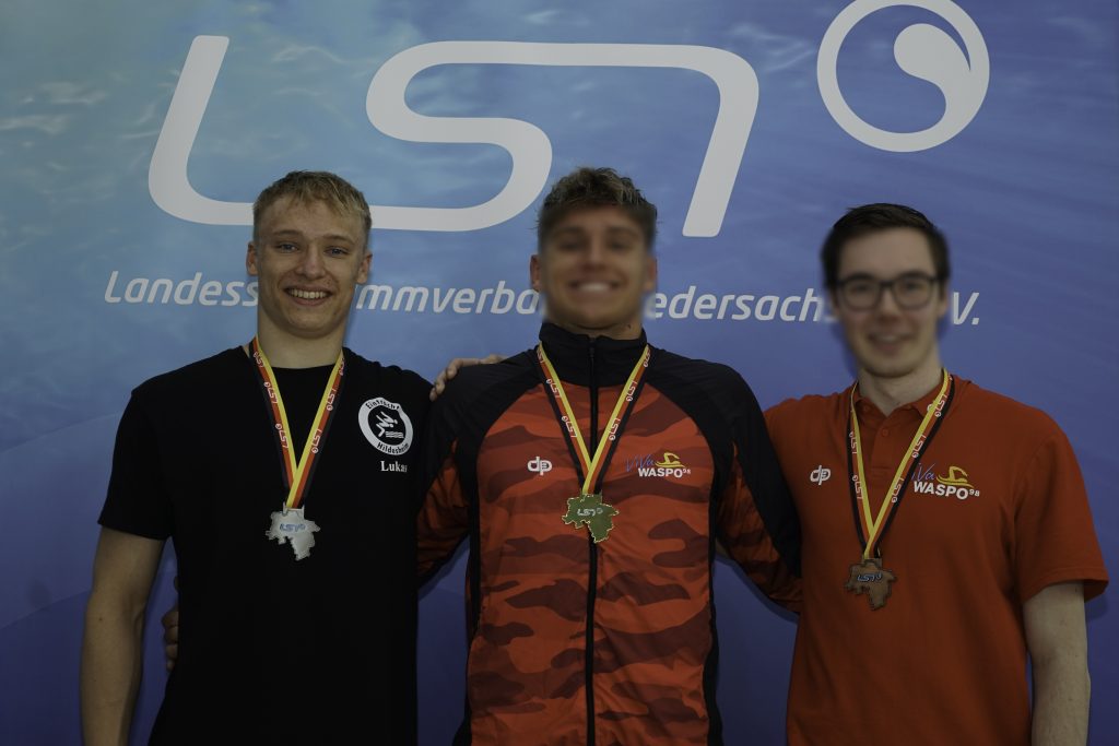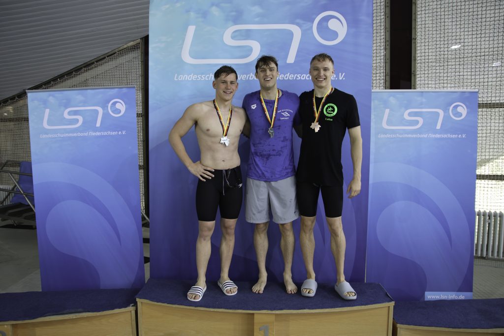 Ein starkes Team-Highlight war die 4×100-Meter-Freistilstaffel: In der Besetzung Lukas Stöcklein, Tim Oberbeck, Jan Ole Englmann und Paul Klußmann sprinteten wir in der niedersächsischen Wertung überraschend auf Platz 3.