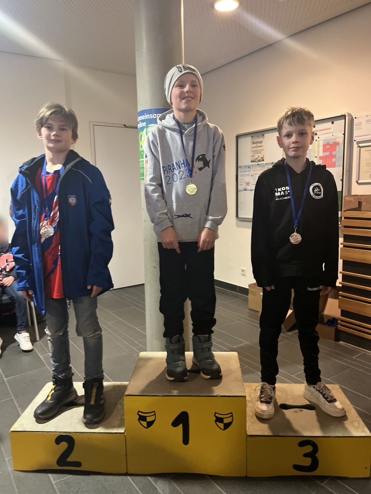 Schwimmer:in Team 1. Platz 2. Platz 3. Platz Charlotte Lindemann B-Team 5x 1x Jule Girbig Haie 5x Anni Machtens Haie 4x 1x Ella Oeßel B-Team 4x Yannick Kastner B-Team 4x Sarah Wehrmaker Haie 2x 2x 1x Edward Schreiber Haie 1x 4x Elias Machens Haie 1x 1x 2x Deniz Ergül B-Team 1x 1x Piet Machens Haie 3x 1x